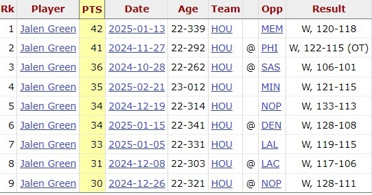 據(jù)統(tǒng)計(jì),這是杰倫-格林本賽季第10場30+,而這10場火箭全勝!