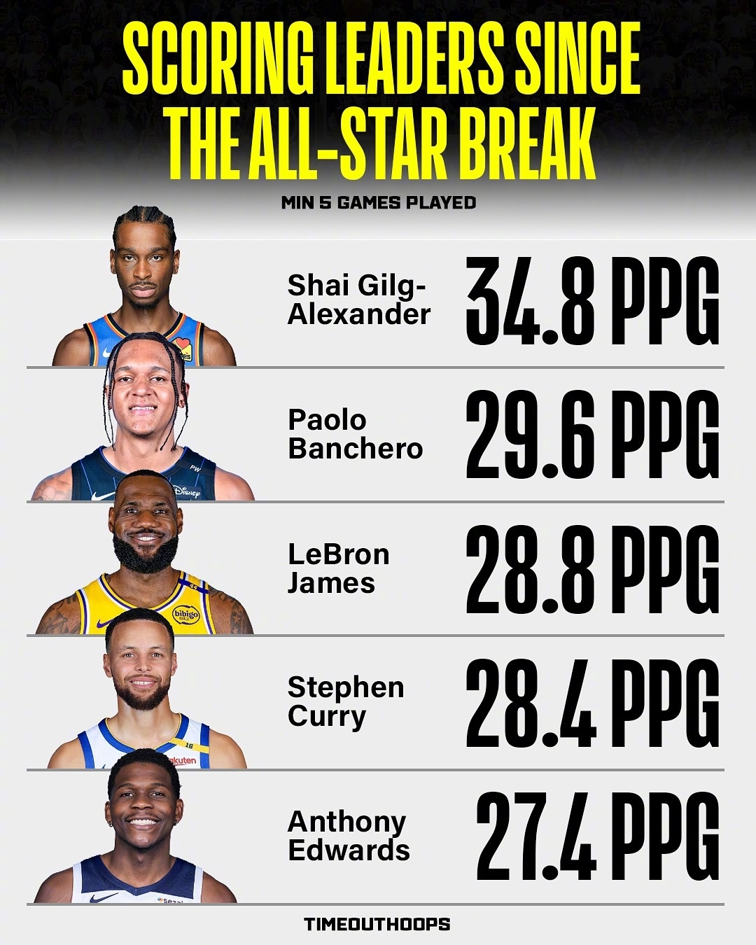 - 全明星后得分榜:鴨梨34.8分?jǐn)鄼n第一 班凱羅第二 詹庫(kù)分列三四位