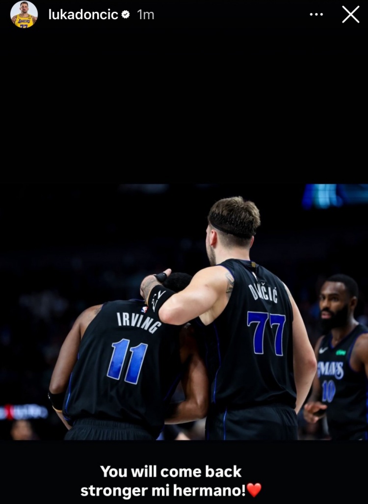 3月5日訊 今日,據(jù)著名記者Shams Charania報(bào)道,消息人士透露,獨(dú)行俠后衛(wèi)凱里-歐文遭受了左膝前十字韌帶撕裂,賽季報(bào)銷。湖人后衛(wèi)盧卡-東契奇更新了Instagram Story,為歐文送上祝福。