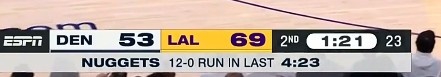 - 宕機(jī)了!湖人四分半一分沒得 被掘金打了一個12-0