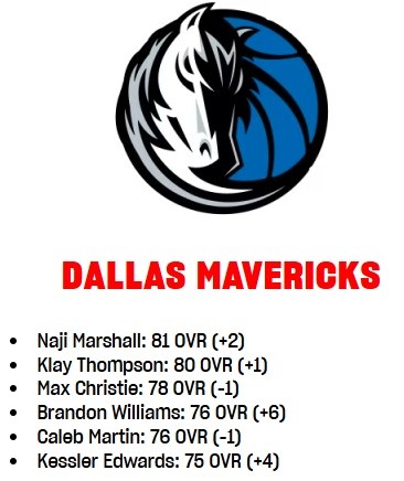 - 獨(dú)行俠球員2K能力值更新:克萊+1至80 馬紹爾+2克里斯蒂-1 一人+6