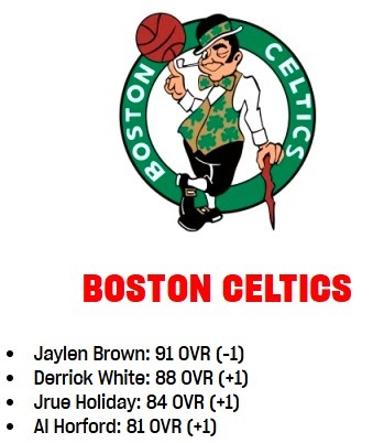 3月21日訊 今天,NBA 2K更新了球員的能力值,凱爾特人隊(duì)的變化情況如下: