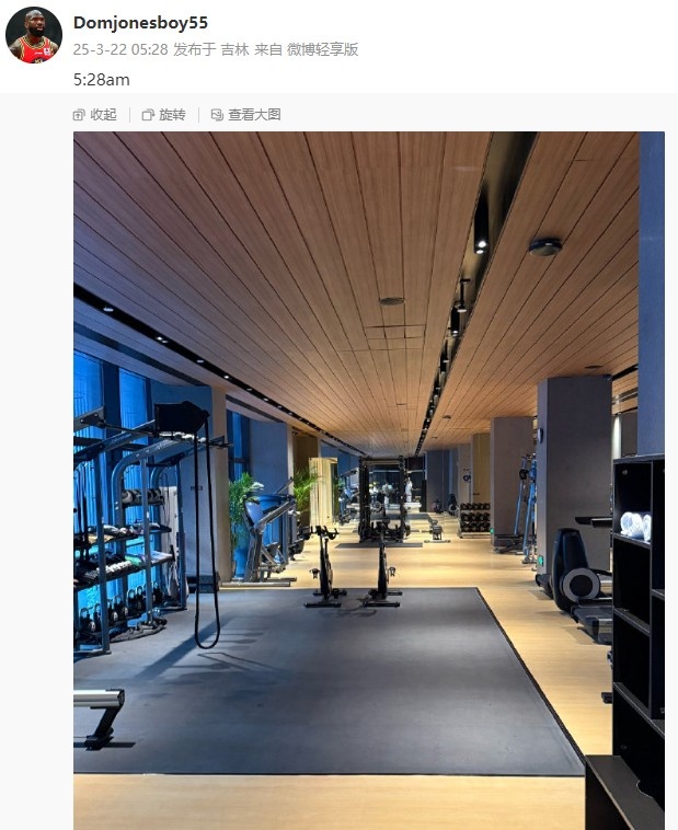 今天,瓊斯一早就起來進行了訓練,他發(fā)文寫道:“5:28am?!?/p>