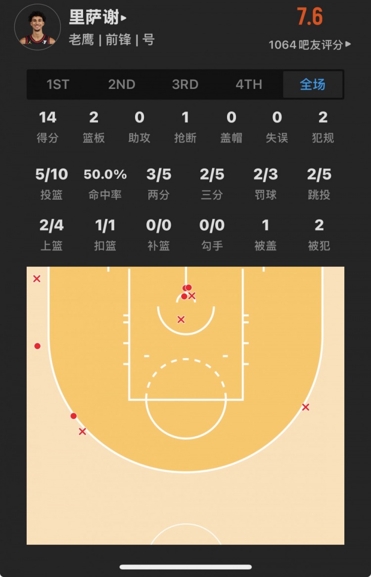 老鷹狀元秀 扎卡里-里薩謝 登場(chǎng)29.3分鐘