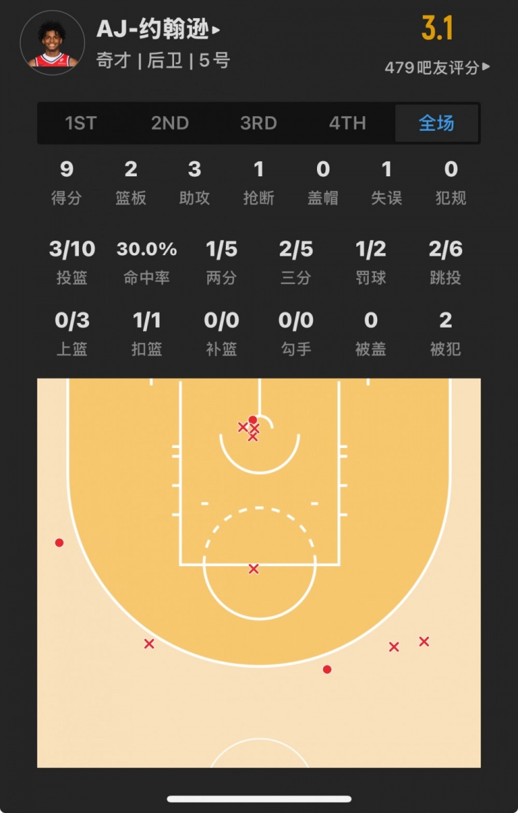 奇才23號(hào)秀 AJ-約翰遜 登場(chǎng)27.9分鐘