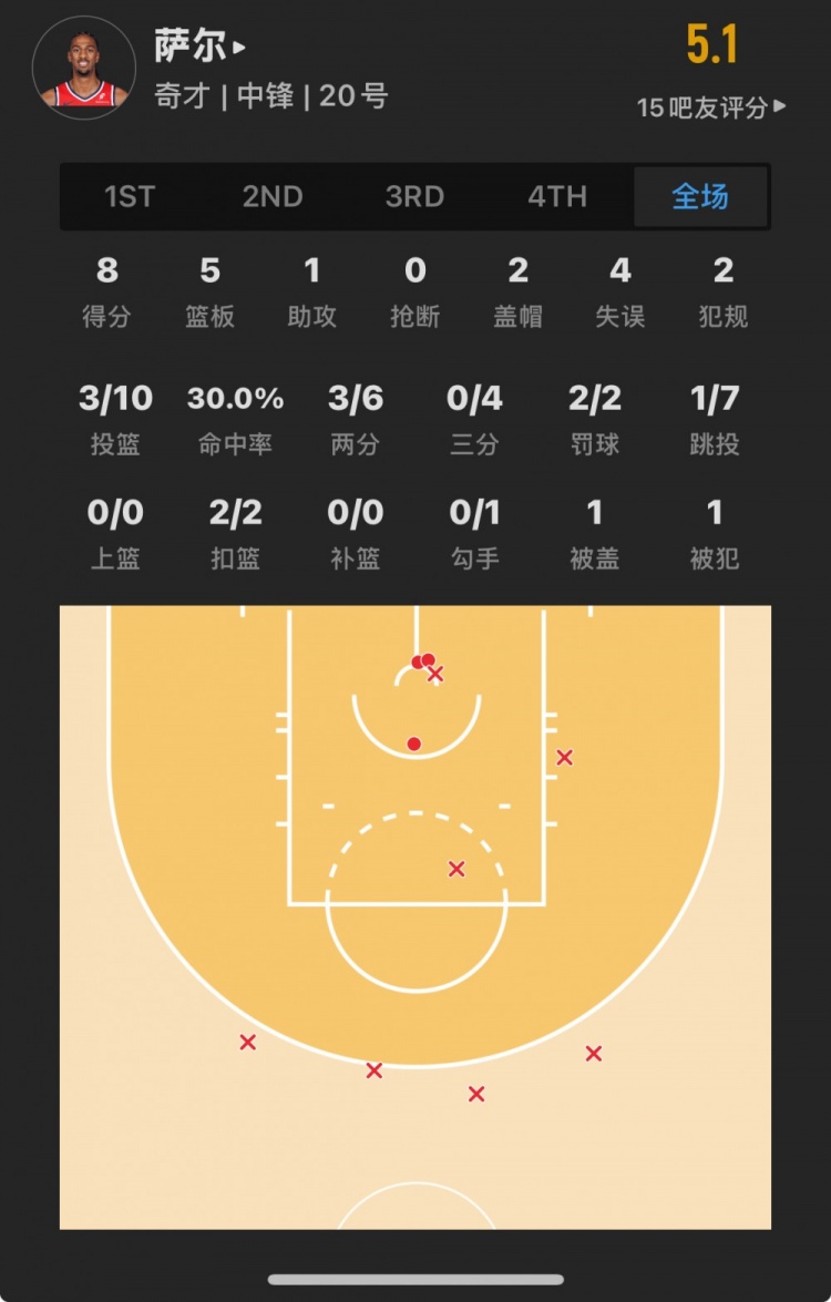 奇才榜眼秀 亞歷克斯-薩爾 登場(chǎng)27.0分鐘