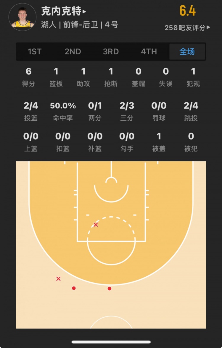 湖人17號(hào)秀 道爾頓-克內(nèi)克特 登場(chǎng)6.7分鐘