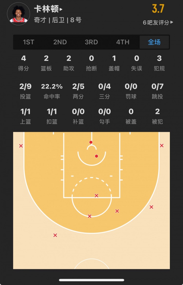 奇才14號(hào)秀 卡爾頓-卡林頓 登場(chǎng)35.5分鐘