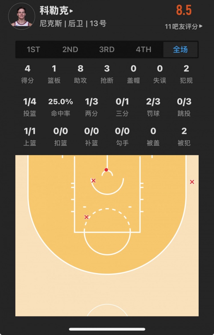尼克斯34號(hào)秀 泰勒-科勒克 登場(chǎng)18.4分鐘