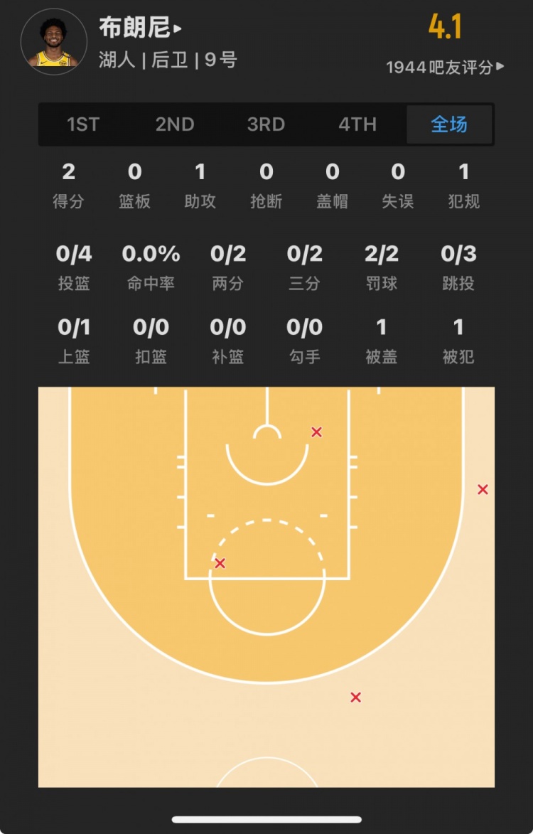 湖人55號(hào)秀 布朗尼-詹姆斯 登場(chǎng)6.7分鐘