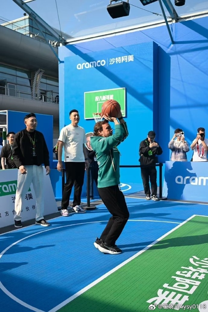 3月24日訊 北京男籃隊長翟曉川曬出自己參加F1中國大獎賽的活動照。