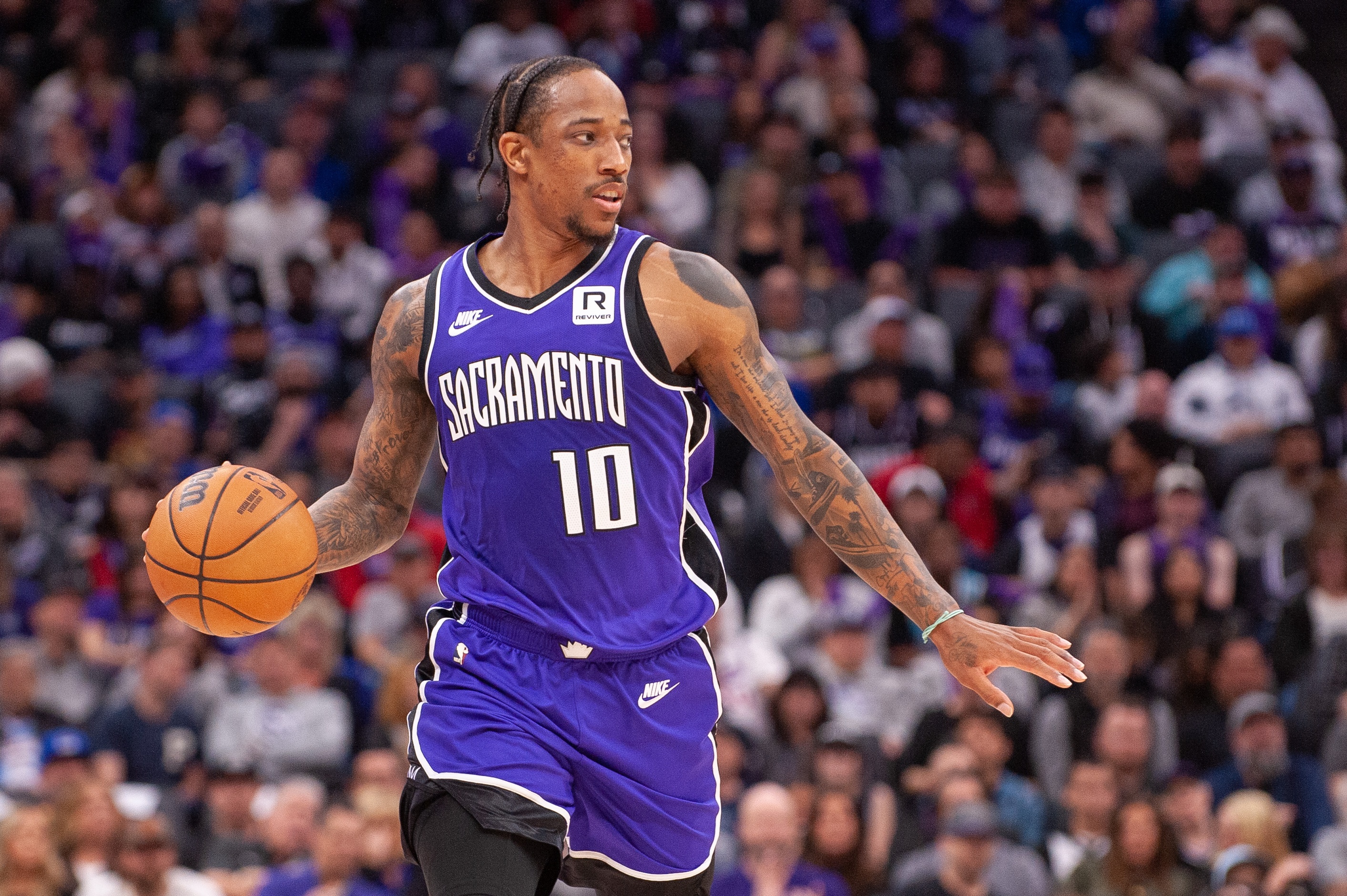 第三節(jié)比賽,國王球星德羅贊狀態(tài)火熱,單節(jié)11中7,三分球5中4,砍下18分1籃板2助攻的數(shù)據(jù)。