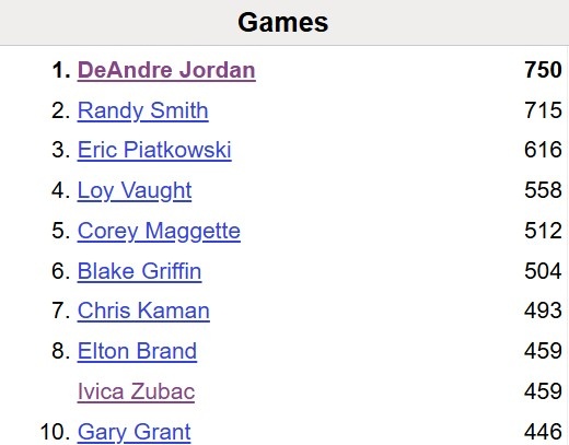- 祖巴茨為快船出戰(zhàn)460場(chǎng)比賽 超越埃爾德-布蘭德&上升至隊(duì)史第八位