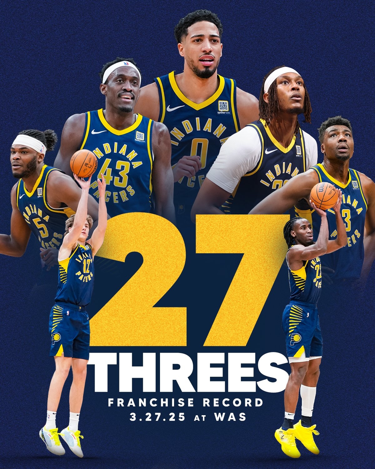 此役,步行者全隊(duì)命中27記三分,創(chuàng)造隊(duì)史紀(jì)錄,此前最多是23記三分。