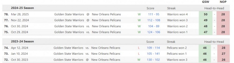 至此,勇士本賽季和鵜鶘的常規(guī)賽交手全部結束,勇士4-0完成橫掃。