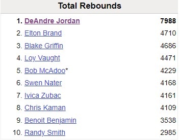 排名第一的是小喬丹,他搶下7988個(gè)籃板。