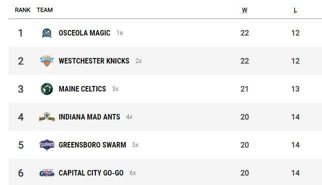 G聯(lián)賽常規(guī)賽東西部前六晉級季后賽,東西部第1、第2名直接晉級分區(qū)半決賽。常規(guī)賽排名東西部前六的球隊(duì)如下: