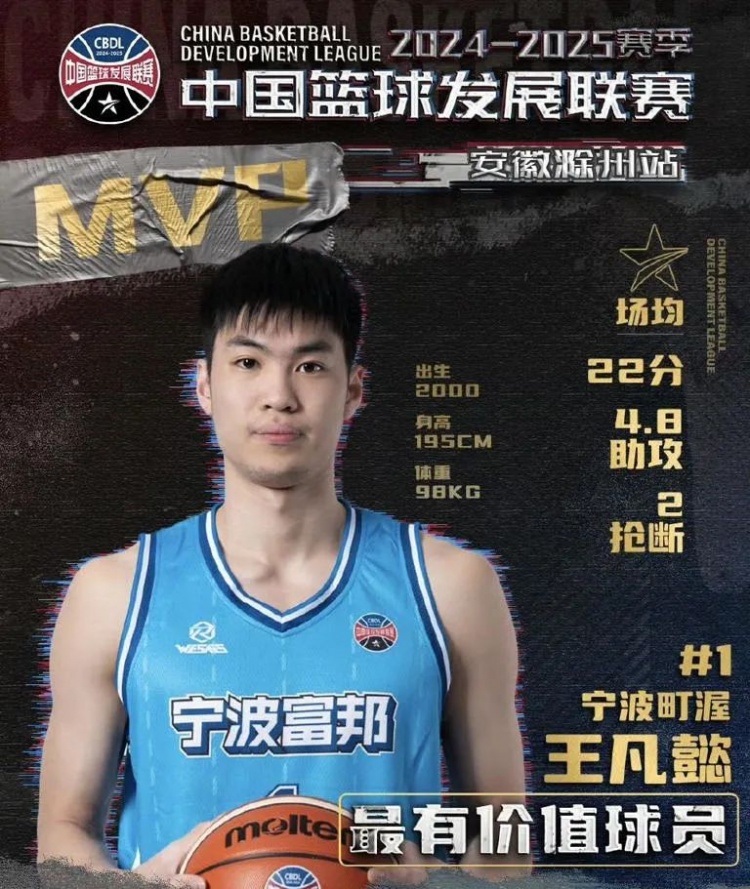 于是,王凡懿就只能去CBDL發(fā)光發(fā)熱了,不出意料的是,他在這里如魚(yú)得水……第二階段滁州站比賽,寧波在他的帶領(lǐng)下6戰(zhàn)全勝,王凡懿也以場(chǎng)均22分4.8助攻2搶斷收獲賽事MVP……