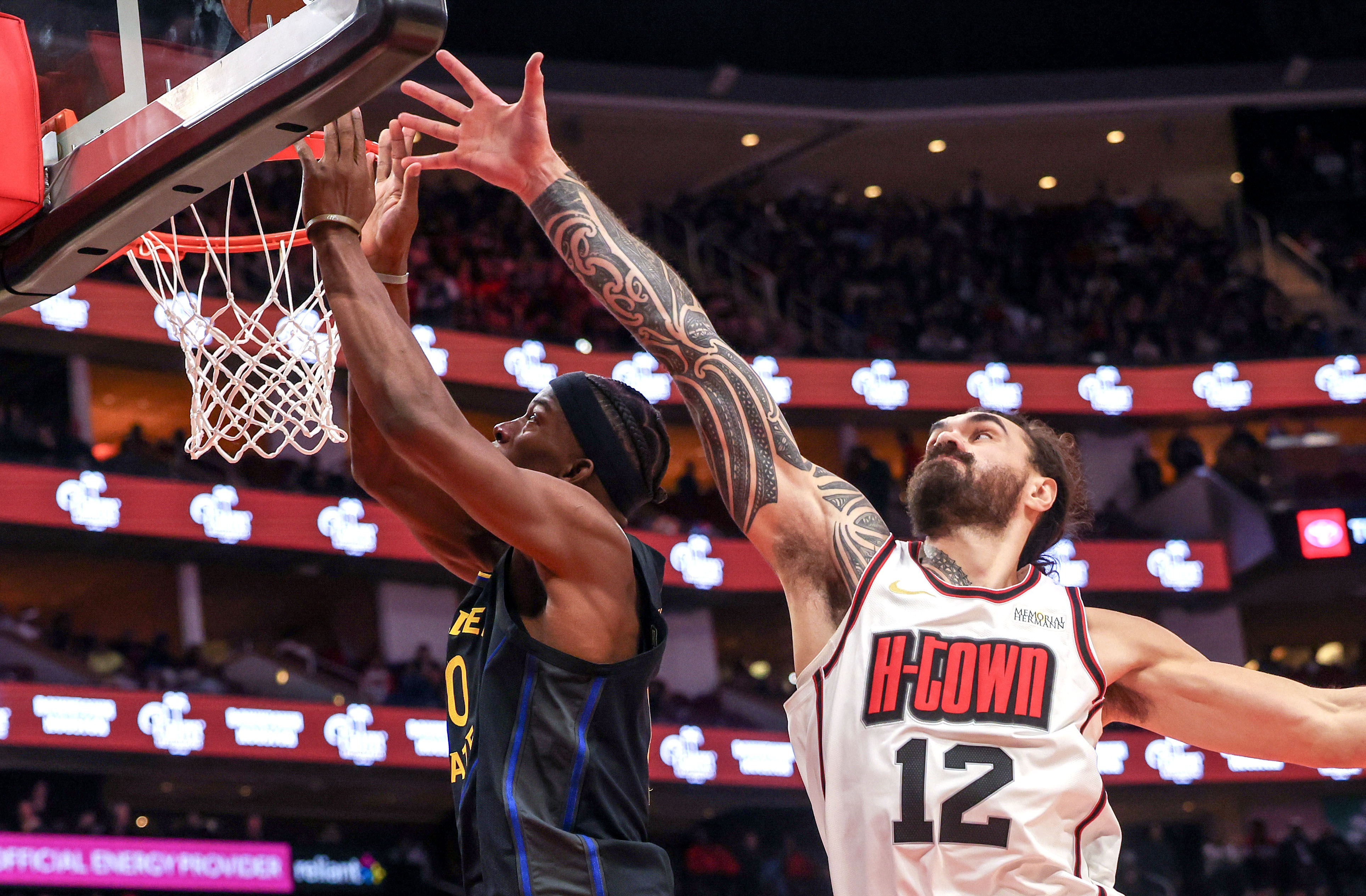 這就是勇士隊(duì)在12月中旬交易來丹尼斯-施羅德的初衷:試圖為已經(jīng)淪為聯(lián)盟倒數(shù)三分之一的進(jìn)攻注入新的活力,并在一系列嘗試中做出新的努力,以止住在庫里離場時的失血。但是,盡管勇士隊(duì)在交易后堅(jiān)稱一名高位擋拆組織者將是對球隊(duì)的有益補(bǔ)充(在主教練史蒂夫-科爾的帶領(lǐng)下,球隊(duì)有時會固執(zhí)地避免過度依賴籃球中最流行的戰(zhàn)術(shù)),但施羅德并沒有融入球隊(duì),他場均可以得到10.6分,三項(xiàng)投籃命中率分別為38%、32%和74%。根據(jù)Cleaning the Glass的數(shù)據(jù),當(dāng)施羅德在場上時,勇士隊(duì)在每100個非垃圾時間的進(jìn)攻回合中凈負(fù)9.9分,當(dāng)他在庫里休息時主導(dǎo)進(jìn)攻時,球隊(duì)的得分水平仍然處于墊底。