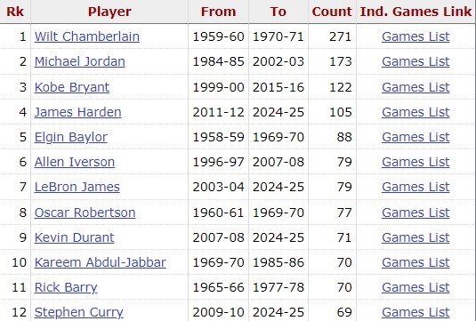- 庫里砍下生涯第70場40+ 追平賈巴爾和巴里 并列歷史第10