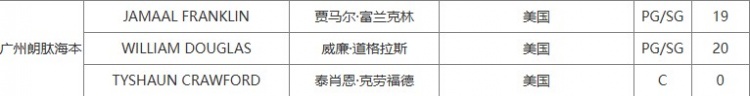 為富蘭克林完成注冊后,廣州目前擁有三外援,另外兩位分別是威爾-道格拉斯和泰肖恩-克勞福德。