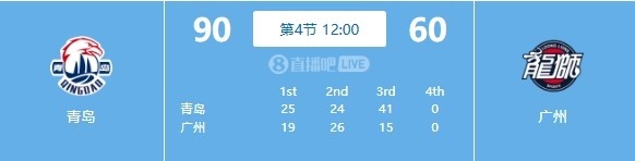 青島第三節(jié)攻防兩端都打得相當出色,他們單節(jié)打了個41-15,單節(jié)凈勝廣州26分,直接在三節(jié)過后將領先優(yōu)勢擴大到30分。