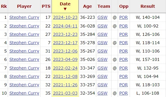 本場(chǎng)過(guò)后,庫(kù)里目前對(duì)開(kāi)拓者10連勝,他上次輸給開(kāi)拓者還是1469天前。