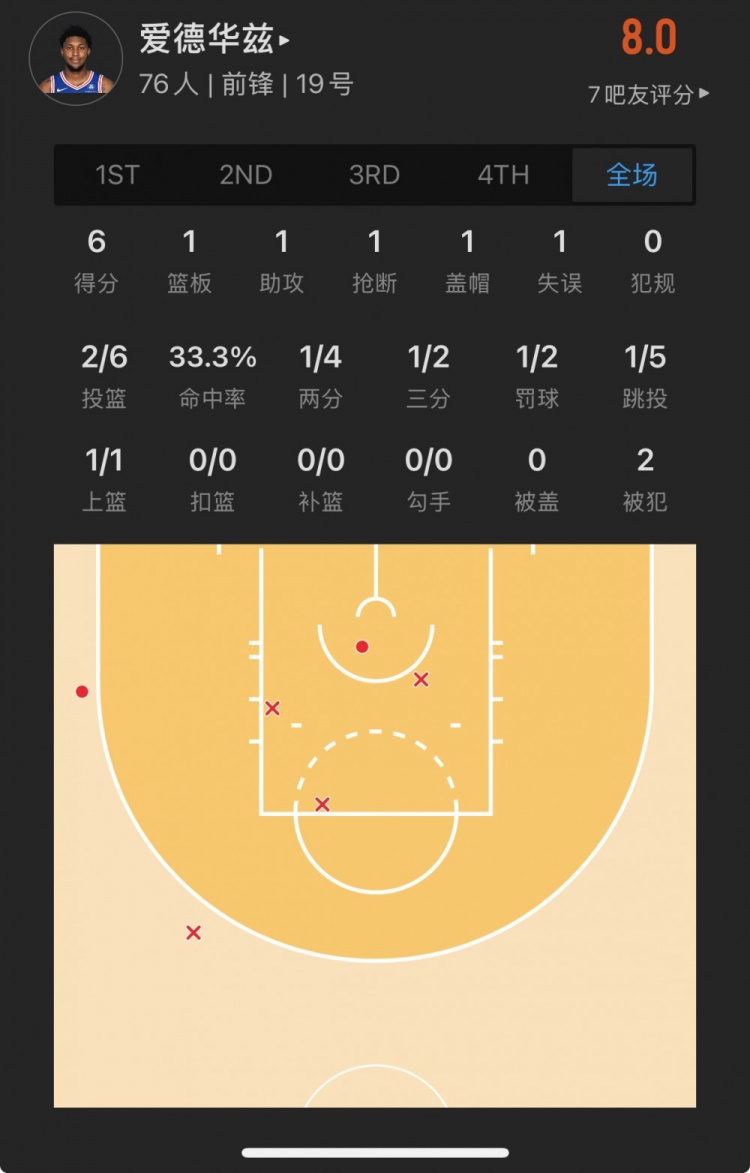 76人落選秀 賈斯汀-愛德華茲 登場(chǎng)20.5分鐘