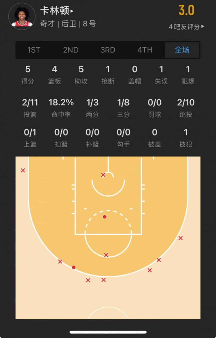奇才14號(hào)秀 卡爾頓-卡林頓 登場(chǎng)25.9分鐘