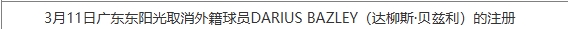 03月11日訊 CBA官網(wǎng)更新外籍球員注冊(cè)名單,廣東取消貝茲利的注冊(cè),重新注冊(cè)吉倫沃特。