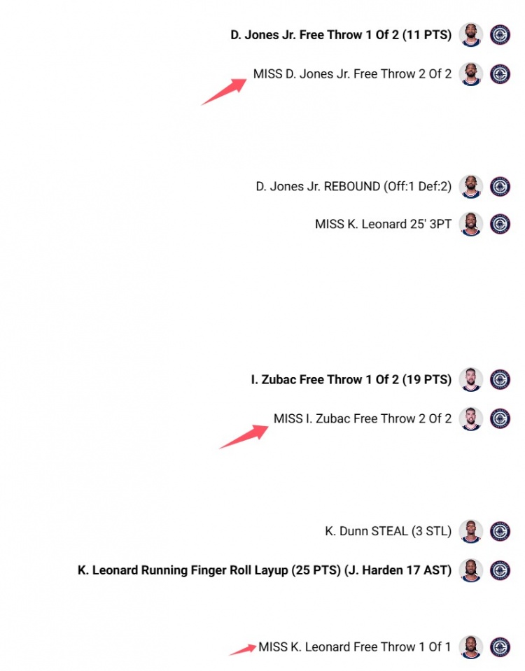 - 決勝時刻!祖巴茨、瓊斯、小卡90秒內(nèi)丟3罰球 全場快船才丟4個