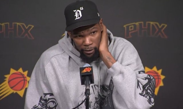 3月5日訊 NBA常規(guī)賽,太陽(yáng)119-117險(xiǎn)勝快船,杜蘭特賽后接受了媒體采訪。