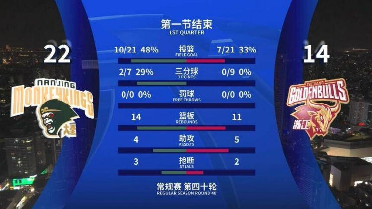 3月14日訊 CBA常規(guī)賽,浙江首節(jié)14-22落后于同曦。