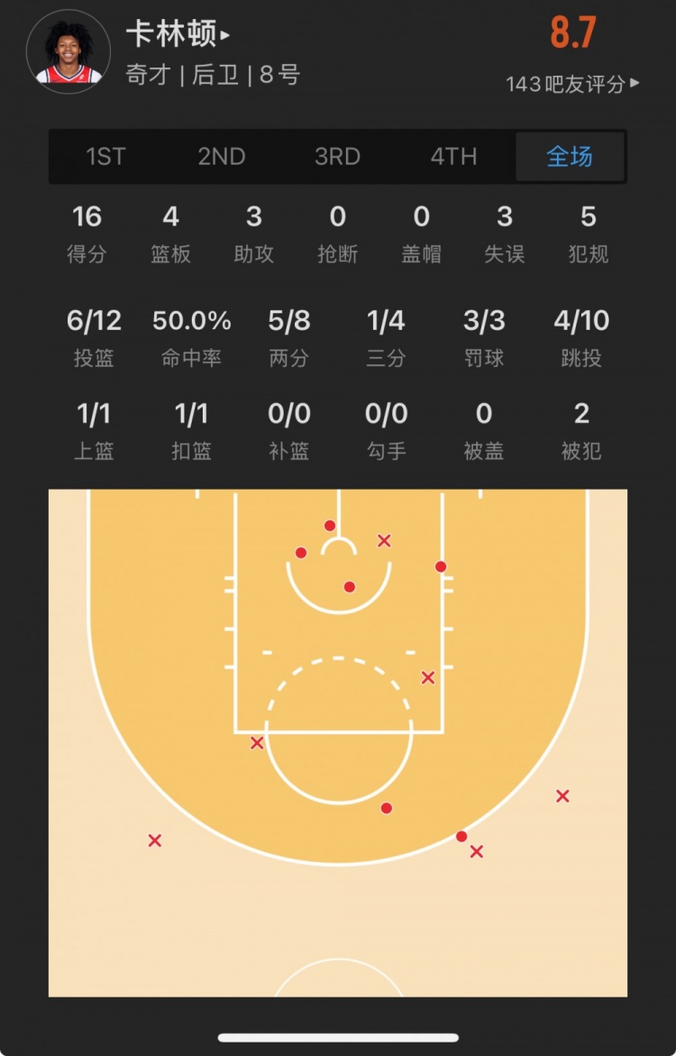 奇才14號秀 卡爾頓-卡林頓 登場27.3分鐘
