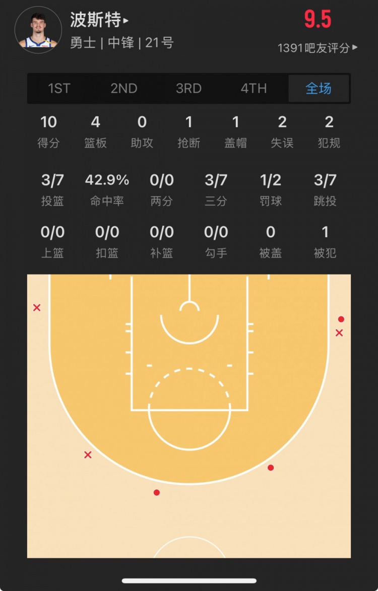 勇士52號秀 昆滕-波斯特 登場20.9分鐘