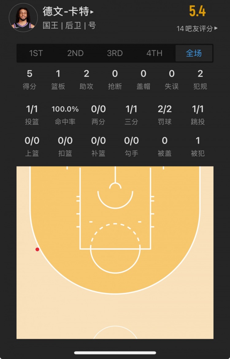 國王13號秀 德文-卡特 登場7.4分鐘