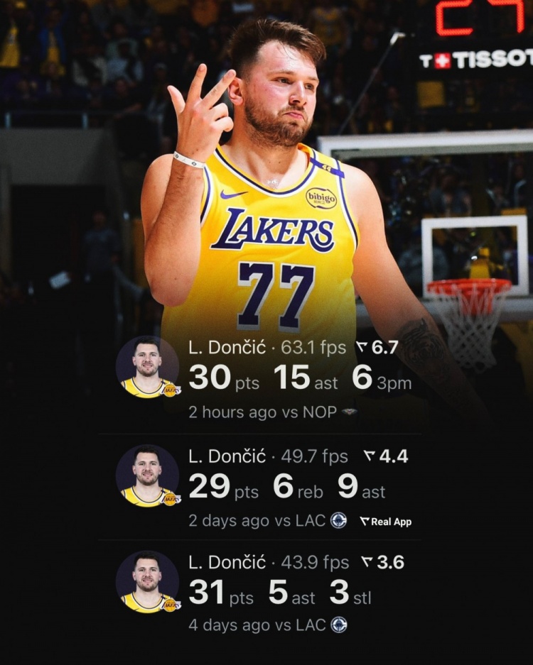 本場(chǎng)比賽,湖人球星東契奇19中9得到30分8籃板15助攻,其中三分球13中6。