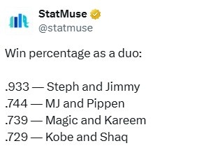 美媒則曬出三組傳奇搭檔勝率進(jìn)行對(duì)比: