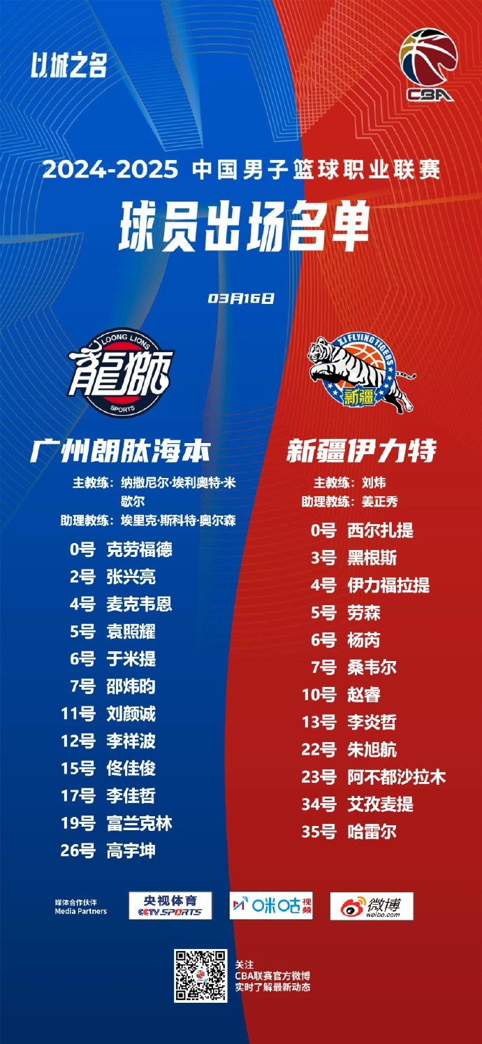 - 新疆隊VS廣州隊大名單:哈雷爾在列 齊麟缺陣 趙睿&阿不都領銜