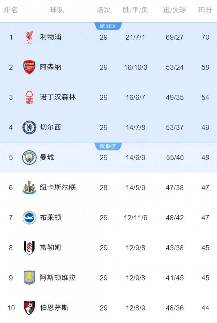 - OPTA預(yù)測(cè)英超爭(zhēng)五概率:森林85.6%領(lǐng)跑,曼城紐卡藍(lán)軍次之