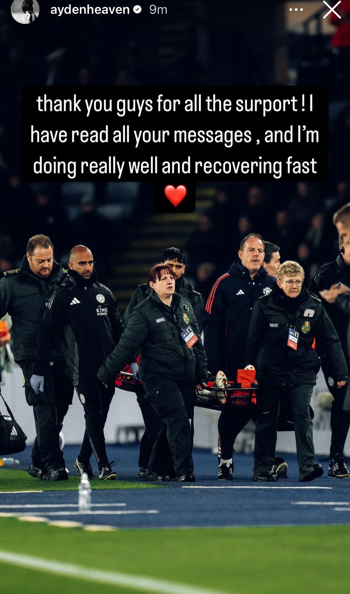 - 此前被擔(dān)架抬出球場(chǎng)!海文社媒:感謝球迷們的支持,我會(huì)很快康復(fù)