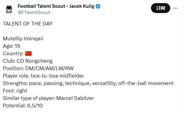 03月19日訊 王鈺棟昨日登上全球球探網站Football Talent Scout“今日天才”板塊,據(jù)博主“朗尼克”介紹,這是過去十年間第二個登上這個網站的中國球員。比王鈺棟更早登上Football Talent Scout的是蓉城青訓出身的木塔力甫。