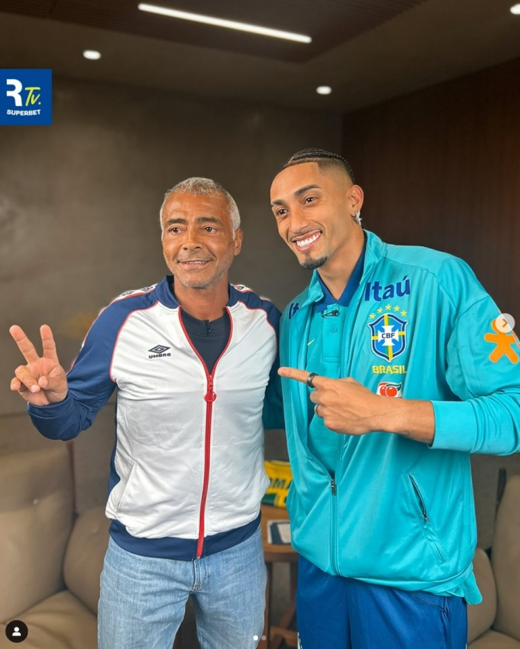 3月19日訊 巴西國家隊已經集結備戰(zhàn)新一輪南美世預賽,羅德里戈、拉菲尼亞以及恩德里克三人做客Roma?rioTV節(jié)目,與巴西傳奇球星羅馬里奧合影留念。