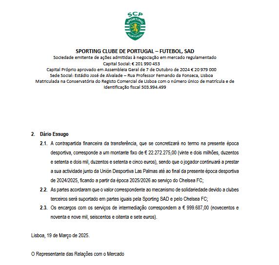 埃蘇戈轉會費為22272275.00歐元(約2227萬歐),將在本賽季結束時支付。球員將繼續(xù)為拉斯帕爾馬斯效力至2024/2025賽季結束,并從2025/2026賽季開始為切爾西效力。