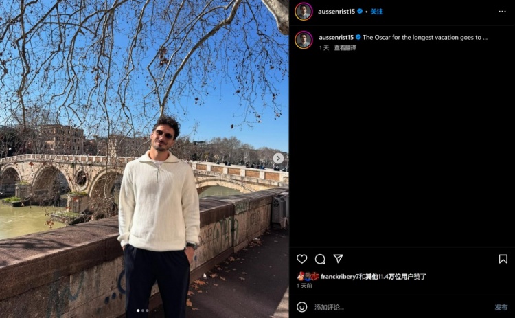昨天,胡梅爾斯曬出自己在羅馬游玩的照片,由于正值奧斯卡頒獎(jiǎng)時(shí)間,他配文:奧斯卡最長假期獎(jiǎng)?lì)C發(fā)給......。不過,由于在對(duì)陣科莫的比賽中,胡梅爾斯替補(bǔ)未出場。因此,有網(wǎng)友認(rèn)為胡梅爾斯的配文是在暗諷拉涅利沒給自己出場機(jī)會(huì)。
