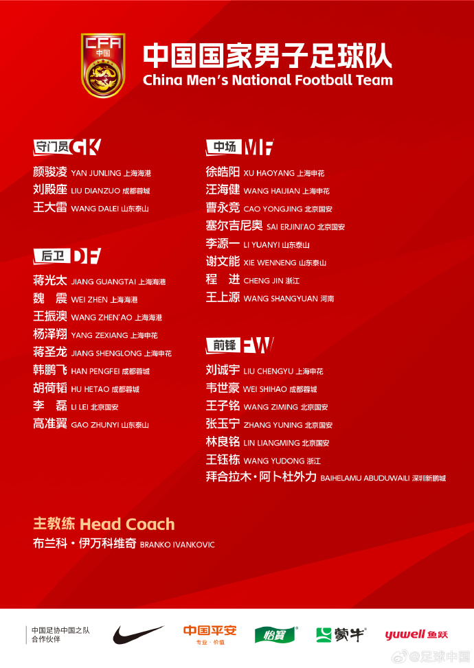 規(guī)則規(guī)定,中國(guó)隊(duì)本場(chǎng)比賽至多報(bào)名23名人。從相關(guān)訊息渠道獲知,根據(jù)球隊(duì)的訓(xùn)練情況,落選球隊(duì)本場(chǎng)比賽報(bào)名陣容的4名球員分別是來(lái)自國(guó)青前鋒王鈺棟、劉誠(chéng)宇、中場(chǎng)球員程進(jìn)、邊后衛(wèi)王振澳,歸化新人塞爾吉尼奧確定入選。