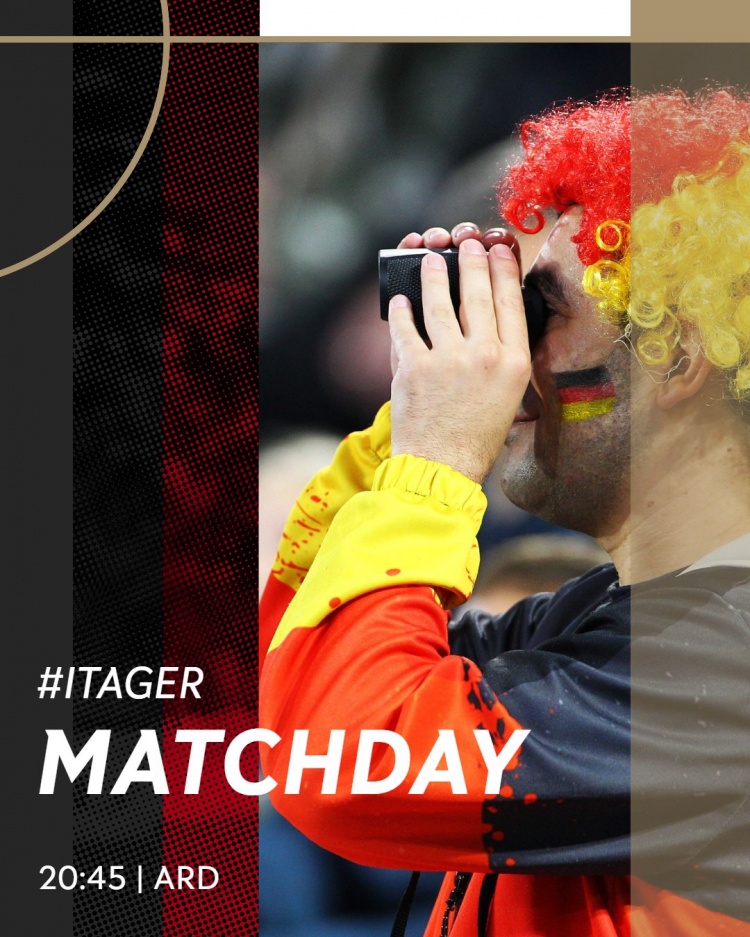 德國隊官方社媒發(fā)布海報預熱這場比賽,海報內(nèi)容為德國球迷手拿望遠鏡觀賽的場景。