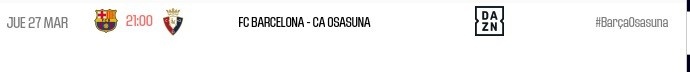 3月21日訊 西甲官方確認(rèn),巴薩對(duì)陣奧薩蘇納的第27輪補(bǔ)賽將于北京時(shí)間3月28日凌晨4:00舉行。