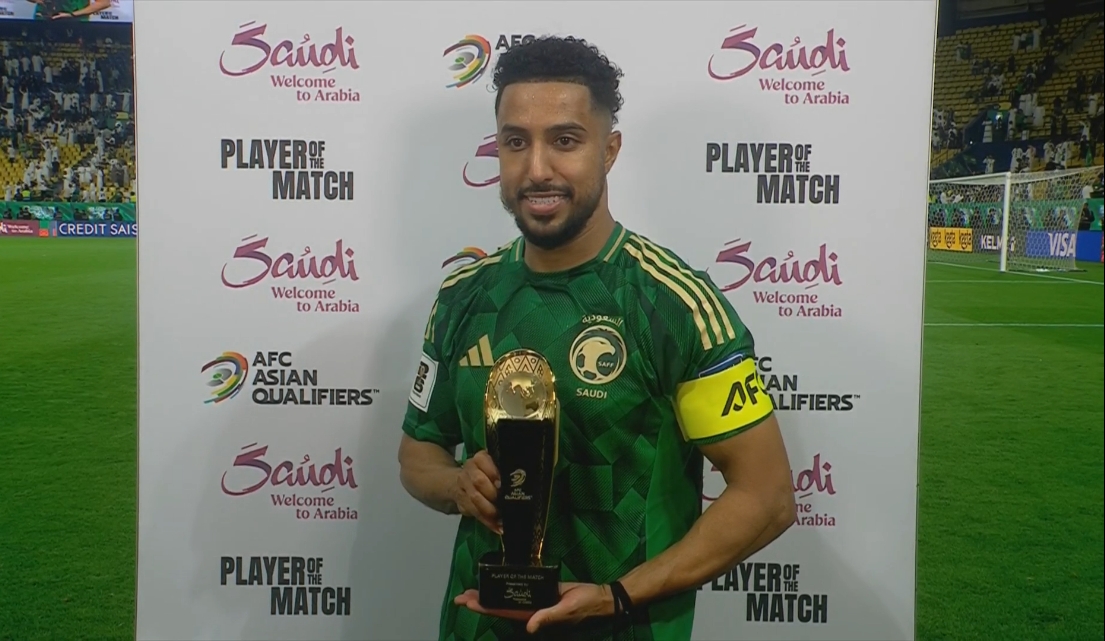 03月21日訊 國足本輪18強賽0-1不敵沙特。賽后,多薩里在現(xiàn)場領取了全場最佳獎杯。