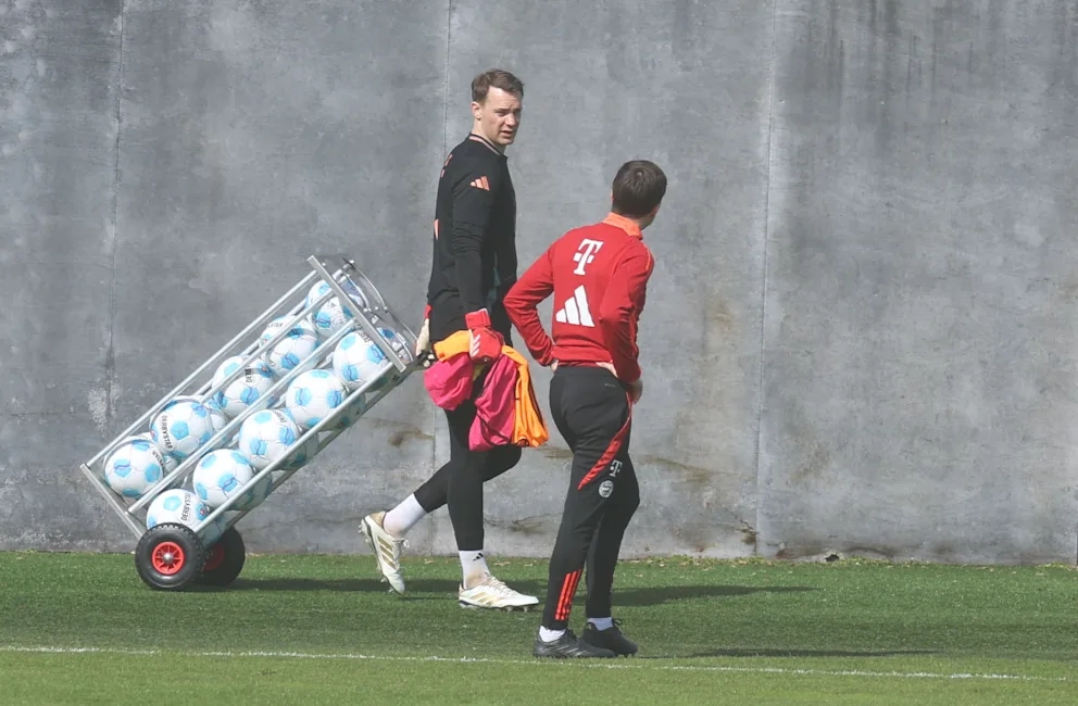 訓練情況原本和以往一樣順利,但僅僅35分鐘后訓練就結束了。諾伊爾被看到和教練員一起收起足球,他跳過了跑動部分的訓練,推著球車慢慢走回更衣室,最終未能完成當日的訓練。顯然,他的小腿出現(xiàn)了肌肉反應。